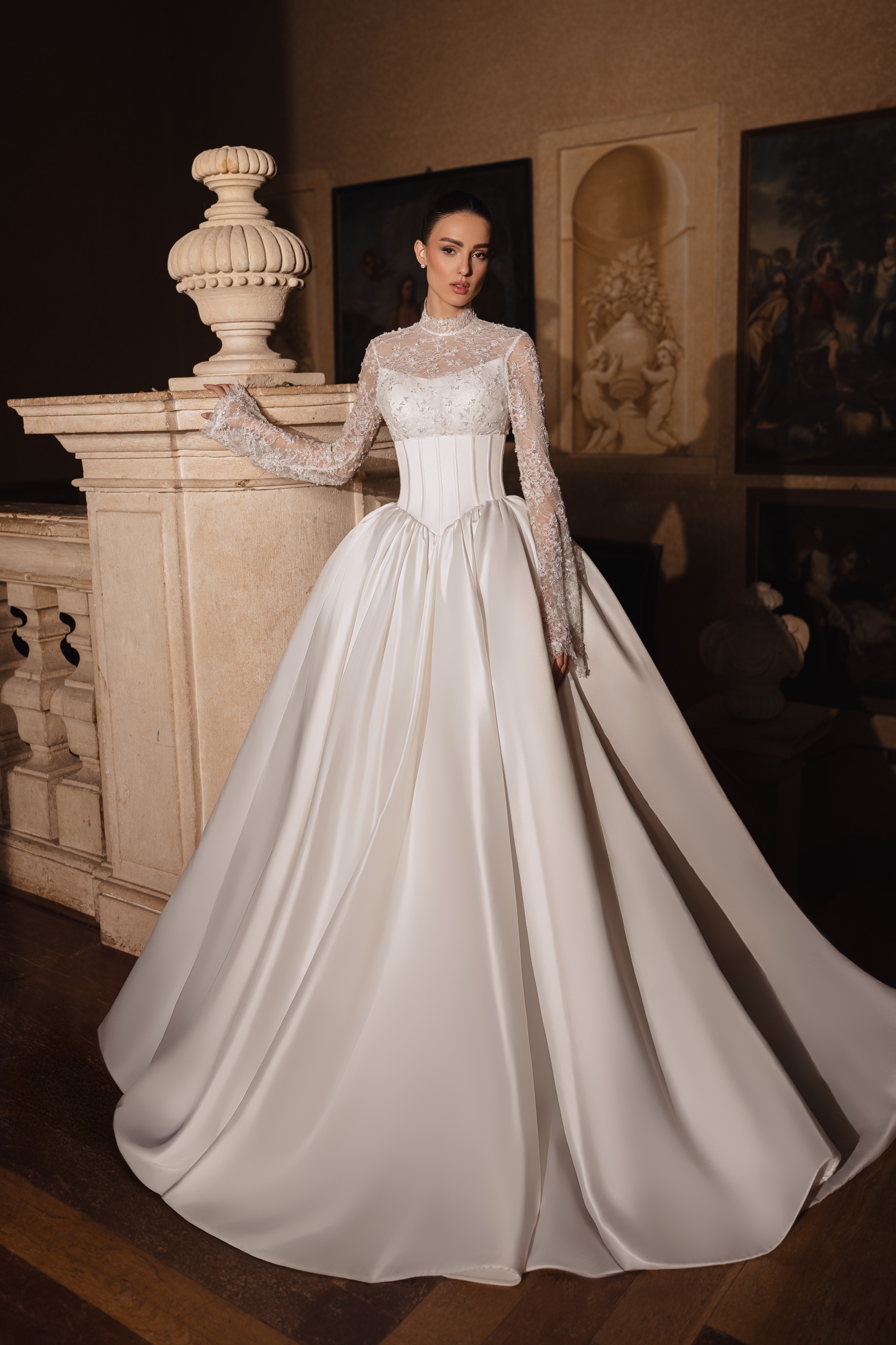 Discover the most popular Dovita Milano bridal gowns in New York, from Basque waist dresses to dramatic wedding trains.