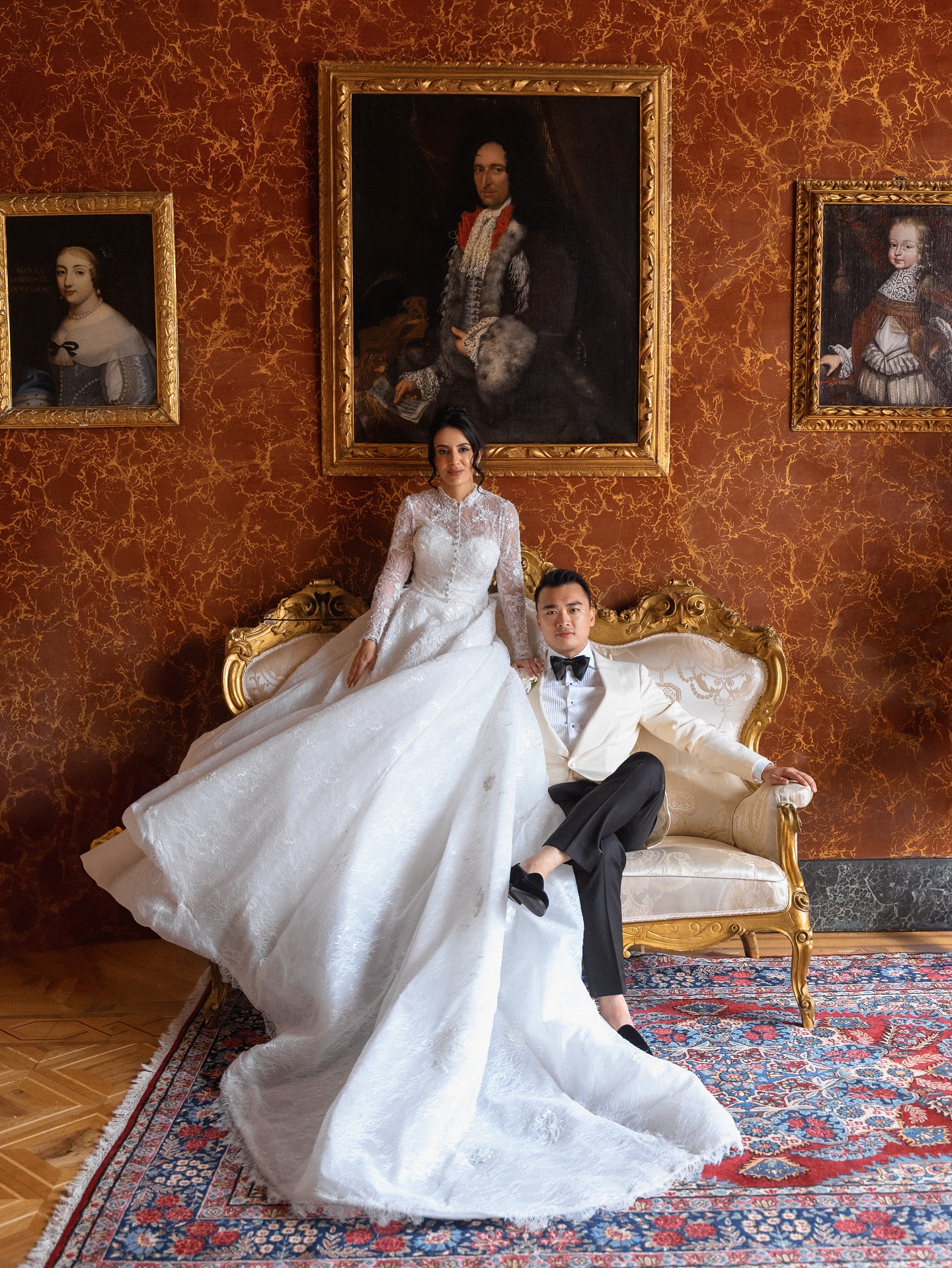 Set against the cinematic backdrop of Lake Como, Moujan’s wedding was the kind that stays with you. Under soft Italian light and framed by historic architecture, her presence was effortless—rooted in calm confidence rather than theatrics.